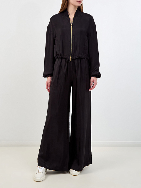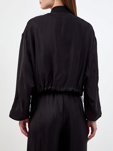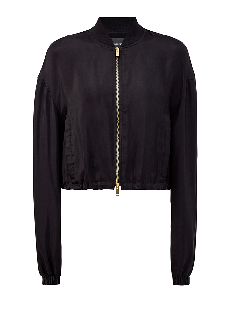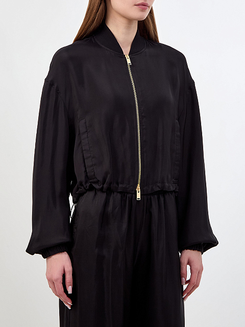 Бомбер из вискозного твила и купро на молнии с объемными рукавами