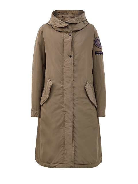 Удлиненная парка из матового нейлона с вышитым макро-логотипом