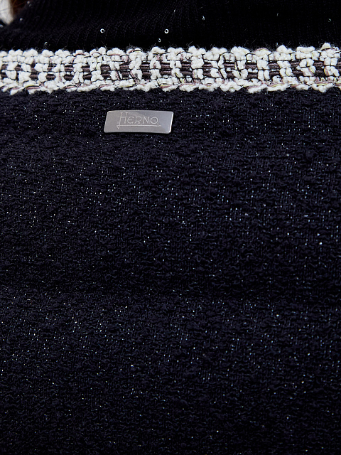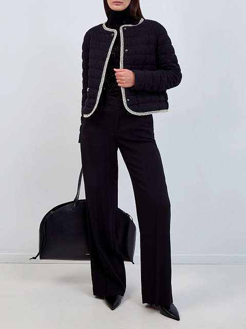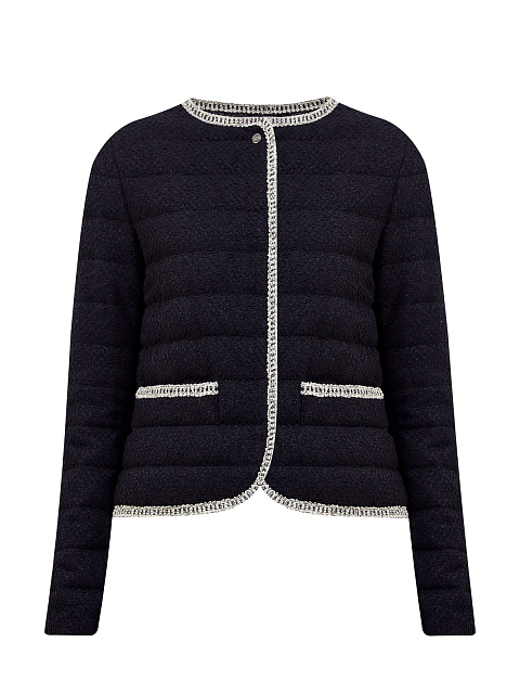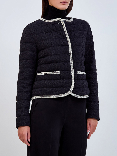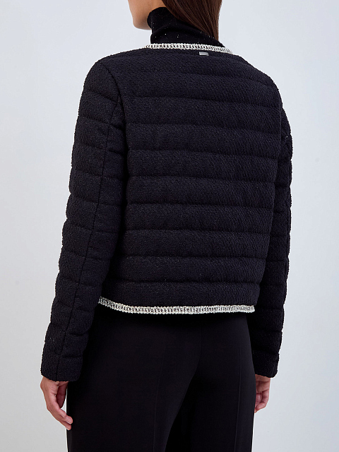 Пуховая куртка из мерцающей ткани букле с контрастной тесьмой