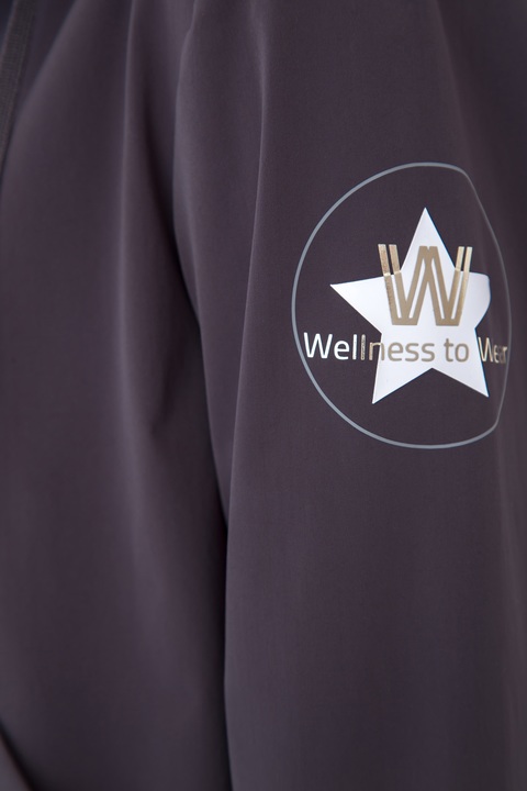 Легкая женская куртка-ветровка из коллекции Lorena Antoniazzi, созданная из плотной дышащей ткани теменого серо-коричневого цвета и дополненная белоснежными вставками. Модель характеризуется асимметричной кромкой, капюшоном с регулировочным шнурком, накладными карманами и застежкой-молнией. Сделано в Италии.