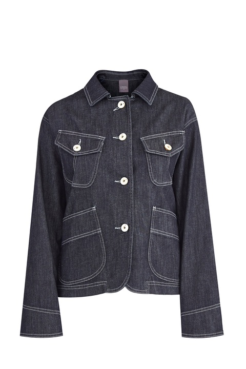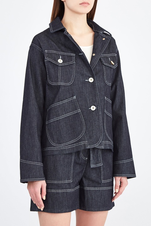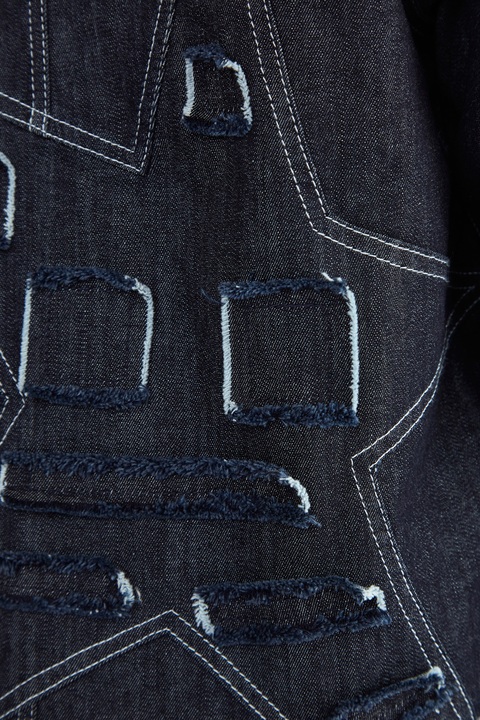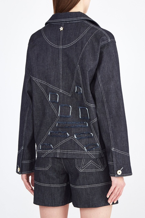 Джинсовая куртка расклешенного кроя с нашивками на спинке