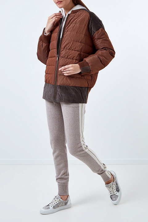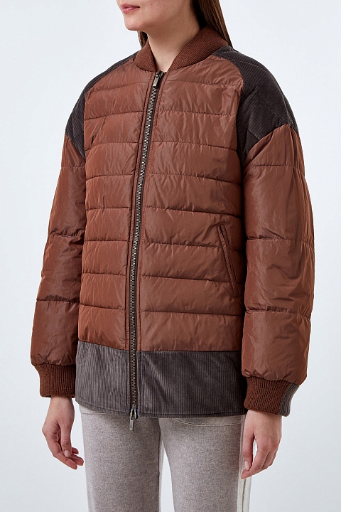 Куртка из легкого нейлона и вельвета с отделкой люрексом