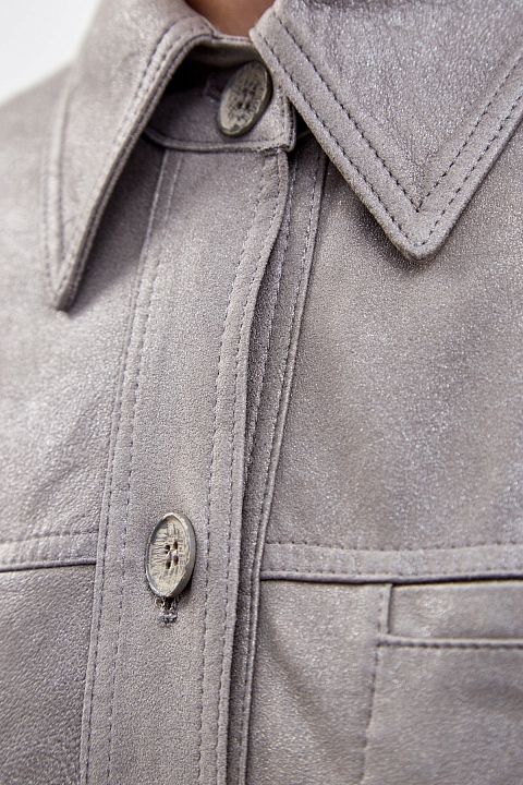 Куртка из шлифованной кожи с напылением цвета черненого серебра