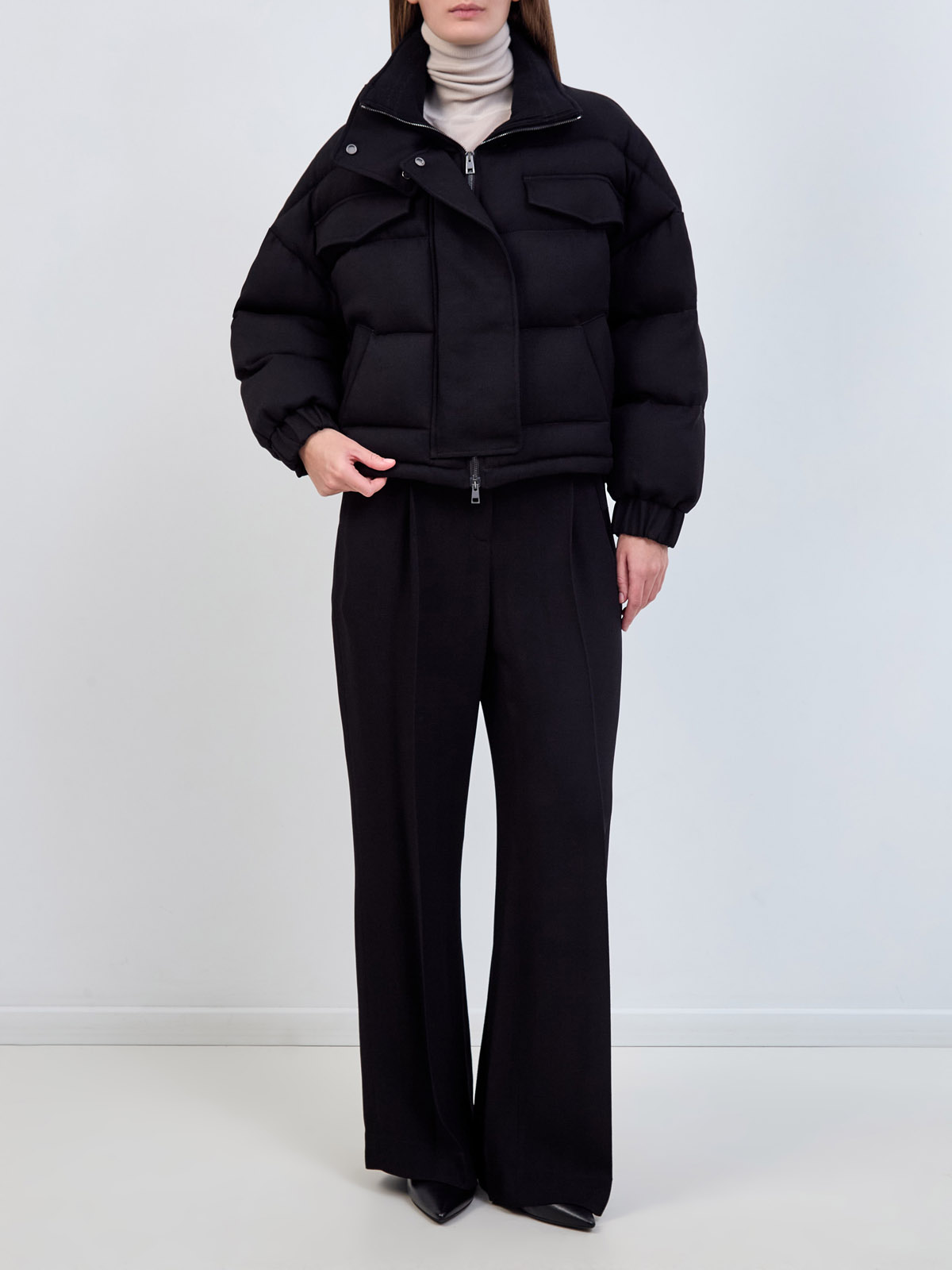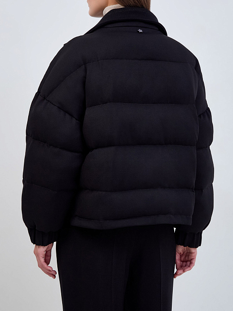 Объемная стеганая куртка из вискозы с трикотажным воротом
