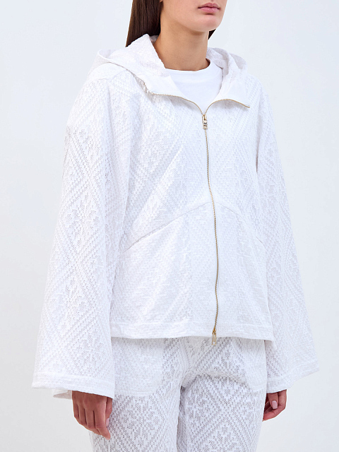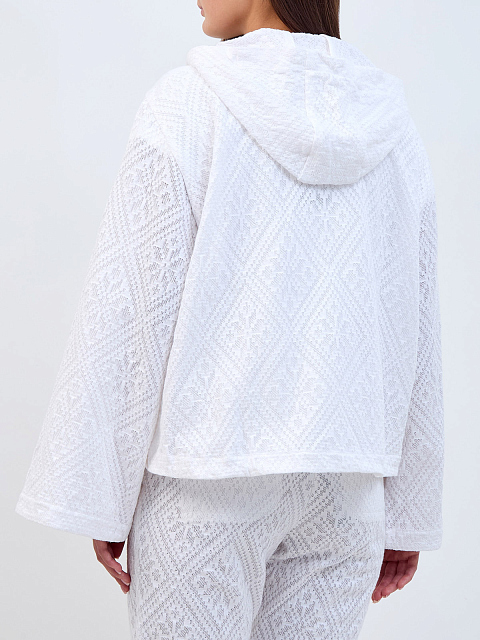 Хлопковый кардиган с капюшоном и жаккардовым узором в тон
