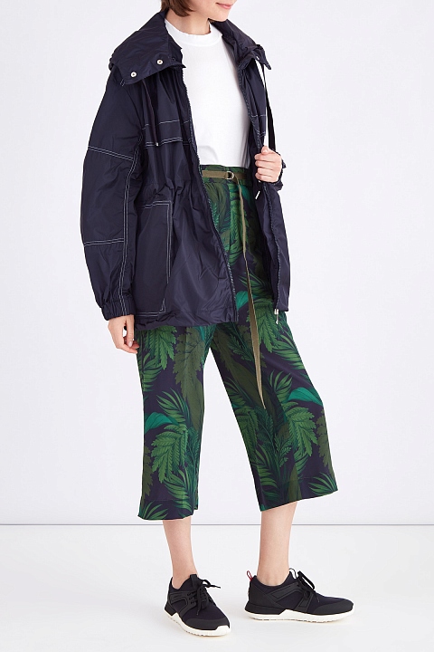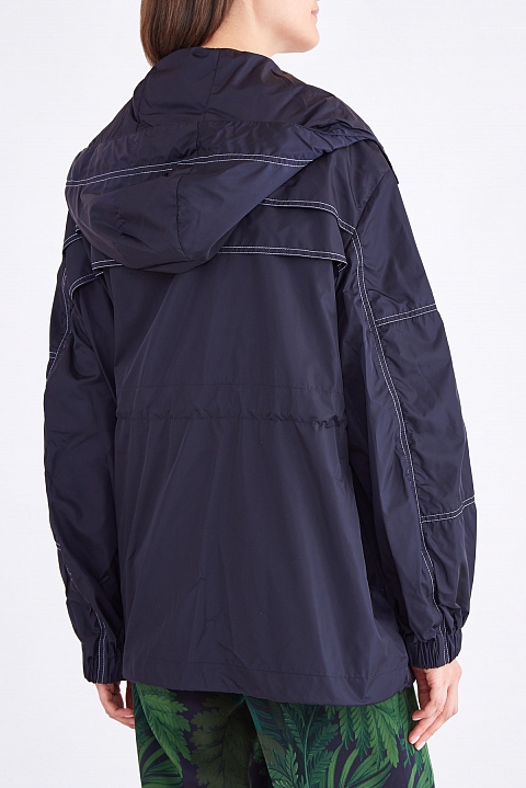 Эффектная женская ветровка «Jade» из весенне-летней коллекции Moncler выполнена из невесомого нейлона с ветронепроницаемыми и водоотталкивающими свойствами. Изделие в базовом темно-синем оттенке оснащено съемным капюшоном и потайной кулиской на талии, которая формирует гармоничный силуэт. Спущенная линия плеча, отрезные детали на рукавах и накладные карманы создают образ в расслабленном стиле, а двойная кокетка на спинке и контрастная прострочка белыми нитями придают модели динамики.