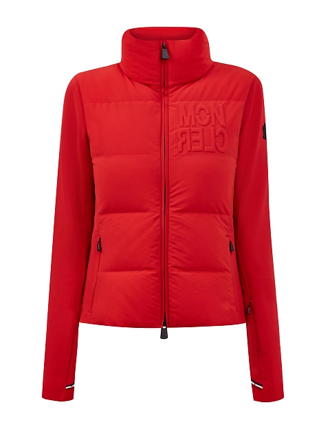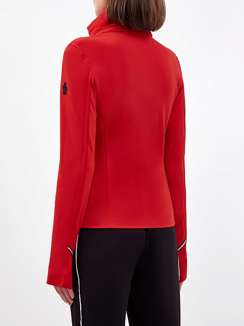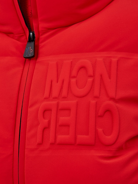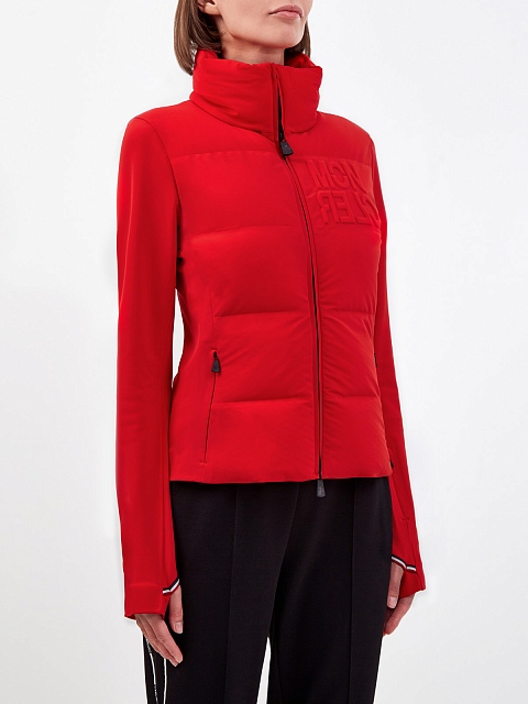 Эффектная женская куртка приталенного кроя от Moncler выполнена в ярком красном цвете. Модель из ветро- и влагозащитного нейлона с утепляющей прослойкой идеально подходит для спорта и активного отдыха, высокий воротник-стойка обеспечивает дополнительный комфорт. Динамичный акцент в образ вносит фактурный логотип бренда в технике горячего тиснения. Детали: длинные рукава с митенками, застежка на молнию с двойным пуллером, прорезные карманы.