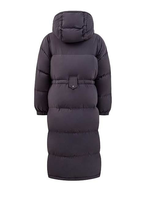 Удлиненный пуховик с регулируемым поясом и капюшоном