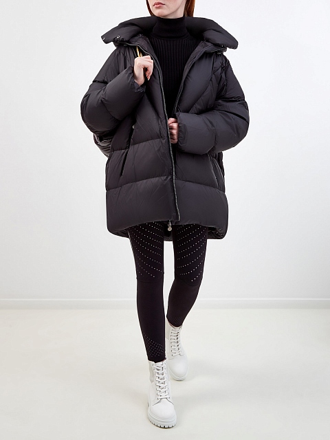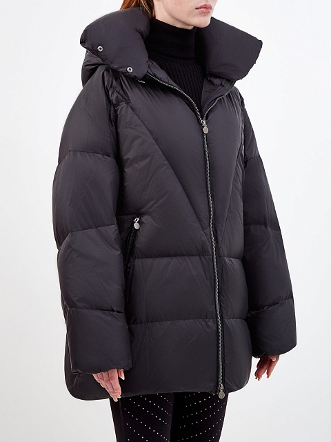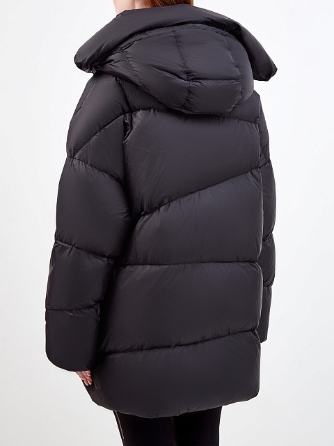 Стеганый пуховик oversize с капюшоном и съемным воротом