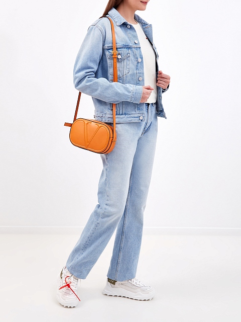 Стильная джинсовая куртка от Off-White выполнена из плотного денима в голубом оттенке. Хлопковый материал с выбеленным эффектом делаве станет идеальным дополнением для расслабленных многослойных образов. Декоративная прострочка швов нитью цвета охры придает динамичный акцент. Спинка изделия украшена цветочной вышивкой в форме стрел — фирменной символики бренда. Детали: регулируемый нижний край, застежка на пуговицы на передней планке, четыре кармана.