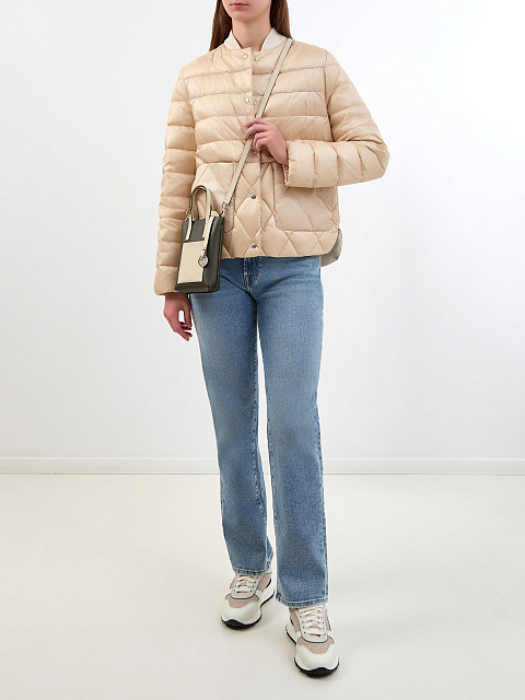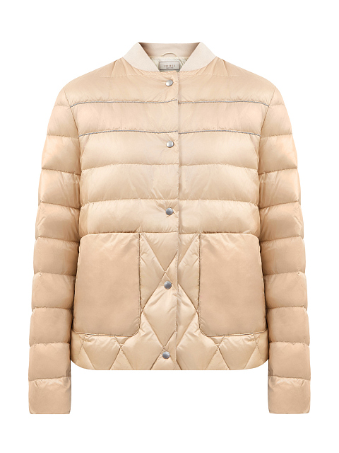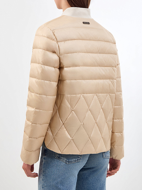 Легкая пуховая куртка с трикотажным воротом и цепочками