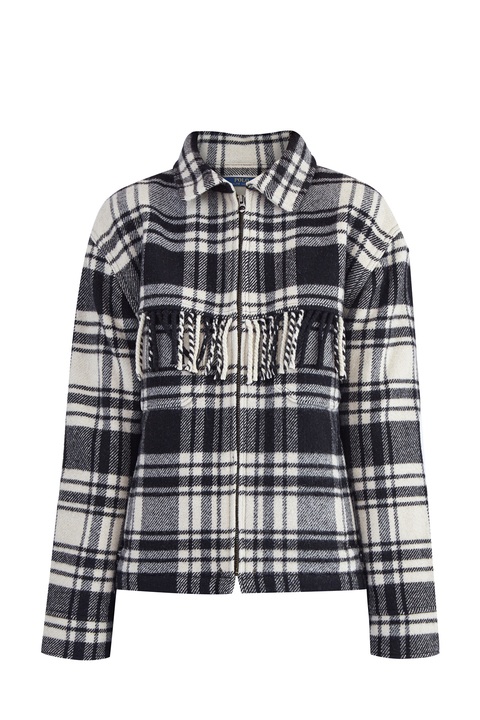 Куртка из плотной и теплой шерсти с ворсистой поверхностью и клетчатым узором в черно-белой гамме