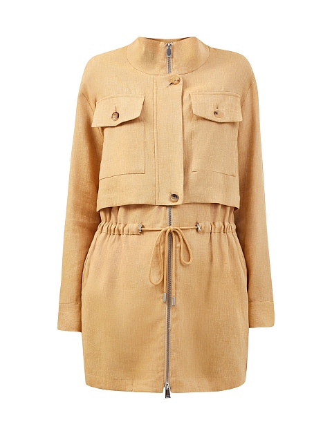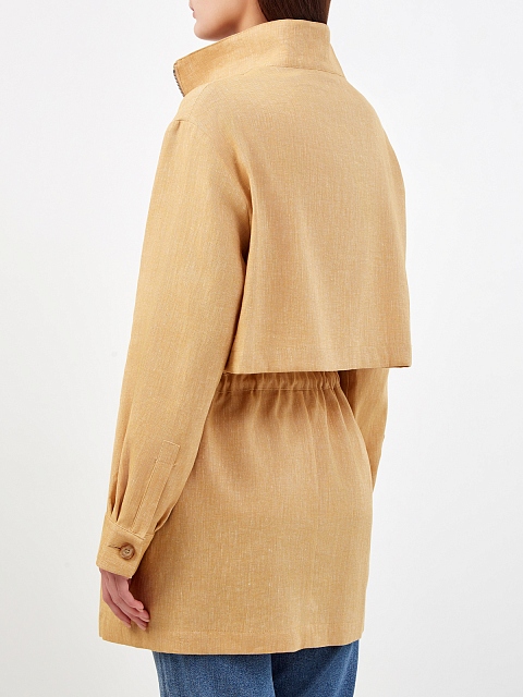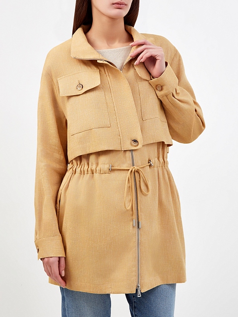 Куртка в стиле тренчкота из хлопка и льна с накладными карманами