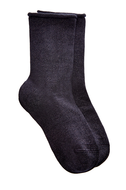 Комфортные носки из кашемировой пряжи Sparkling от Brunello Cucinelli. Глубокий угольный оттенок дополнен нитью люрекса цвета лаванды. Техника гладкой вязки подчеркивает сверкающую фактуру материала. Выверенный процент синтетических волокон в составе позволяет ткани сохранять первоначальную форму. Детали: эластичная окантовка верхней кромки, уплотненный мысок. Сделано в Италии.