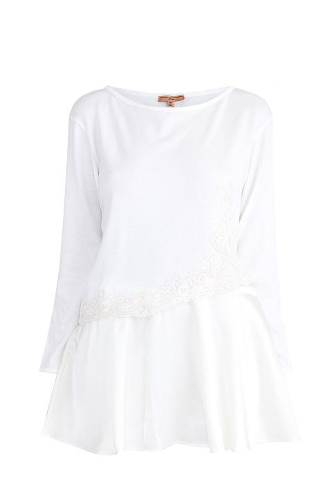Пижамный джемпер с многослойным эффектом и кружевной вышивкой