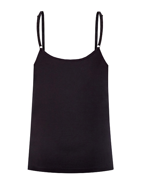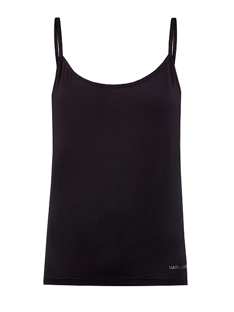Минималистичный топ в черном цвете от Karl Lagerfeld выполнен из гладкого эластичного лиоцелла. Благодаря изящному силуэту и регулируемым бретелям модель идеально подходит для создания многослойного образа или аутфита для дома.