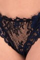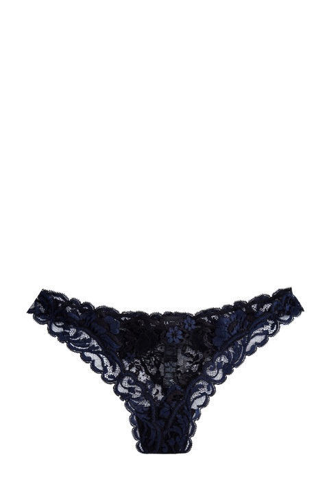 Изящные трусики-бразильяна из коллекции Desert Rose бренда La Perla созданные из полупрозрачного изысканного кружева Leavers в синей и черной гамме. Изящные линии орнамента отсылают к аутентичному кристаллу «Роза пустыни». Сделано в Италии.