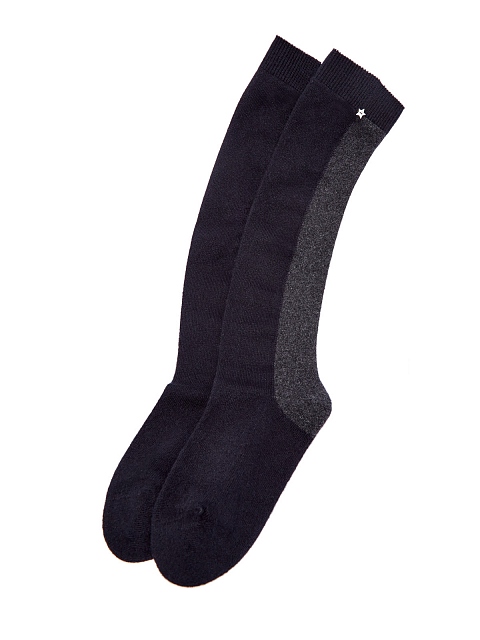 Высокие женские носки из тонкой кашемировой пряжи от Lorena Antoniazzi. Техника эластичной вязки подчеркивает фактуру материала, символика бренда в виде звезды подчеркивает фирменный стиль изделия.