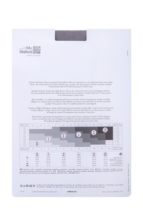 Классические колготки Satin Touch от бренда Wolford, дополненные шортами с моделирующим эффектом. Модель с мягкой полупрозрачной поверхностью с легким мерцанием и поясом, украшенным символикой бренда. Мыски изделия уплотнены, обеспечивая комфорт и долговечность. Плотность: 20 den, цвет: серый. Сделано в Австрии.