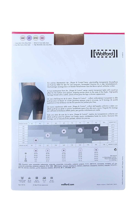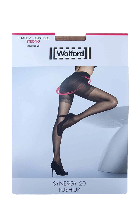 Полупрозрачные колготки «Synergy 20 Push-up» Wolford карамельного оттенка с перламутровых блеском, придающим визуальную стройность ногам. Отличительной характеристикой модели является уплотненная секция от талии до бедер, идеально поддерживающая женские формы. Изделие с хлопковой ластовицей и укрепленным носком. Плотность: 20 den. Произведено в Австрии.