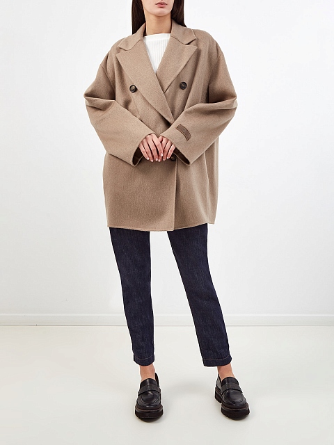 Пальто-бушлат из кашемира с ювелирной нашивкой Precious