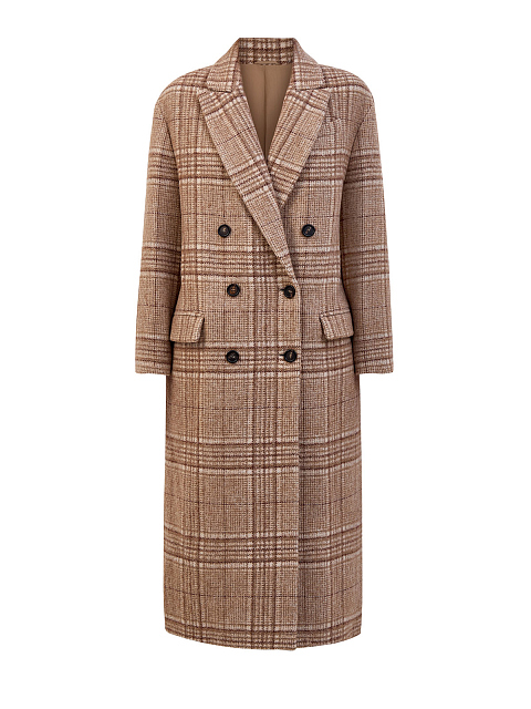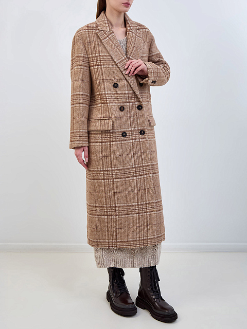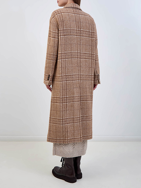 Клетчатое пальто из шерсти и альпаки с цепочками Мониль