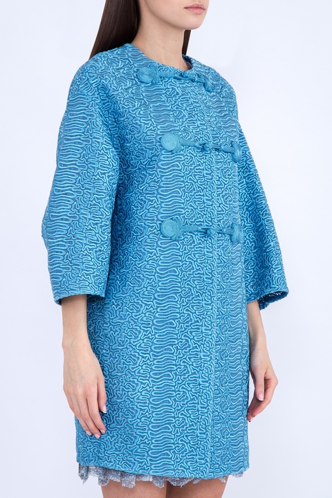 Легкое пальто-кокон с фактурной вышивкой и отделкой в стиле милитари