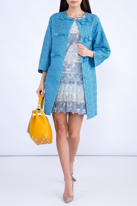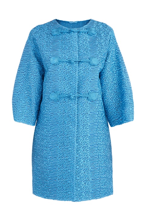 Яркое пальто-кокон Ermanno Scervino характеризуется фактурной поверхностью, свойственной новой коллекции бренда. Модель выполнена в цвете голубого топаза и дополнена объемными застежками-петлями на передней планке. По бокам глубокие прорезные карманы. Сделано в Италии.