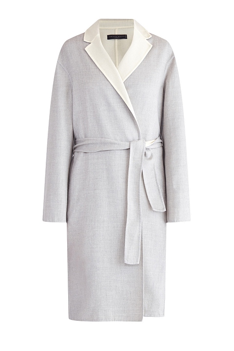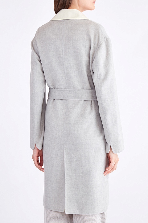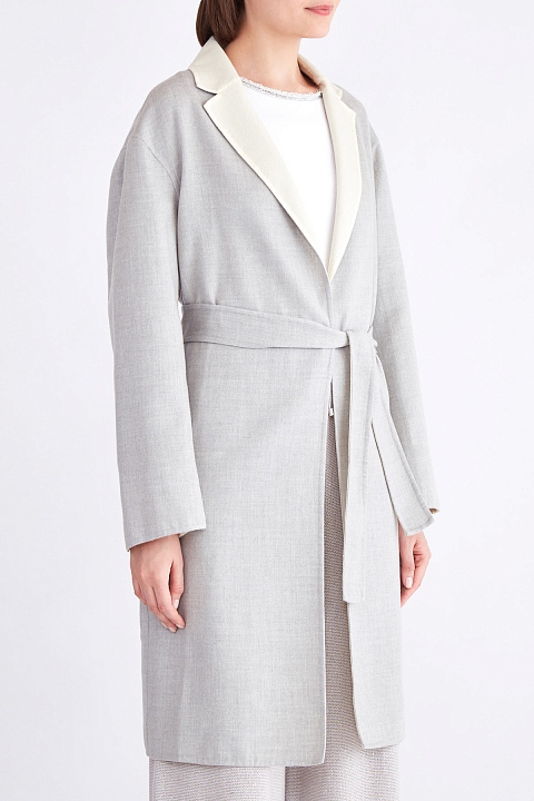 Пальто из мягкого кашемира со светлой внутренней отделкой и поясом