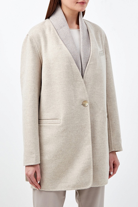 Пальто из шерсти и кашемира со съемным вязаным воротом