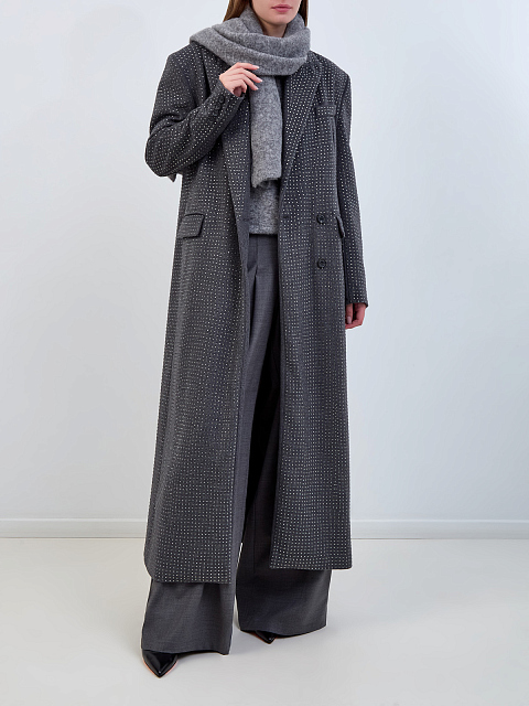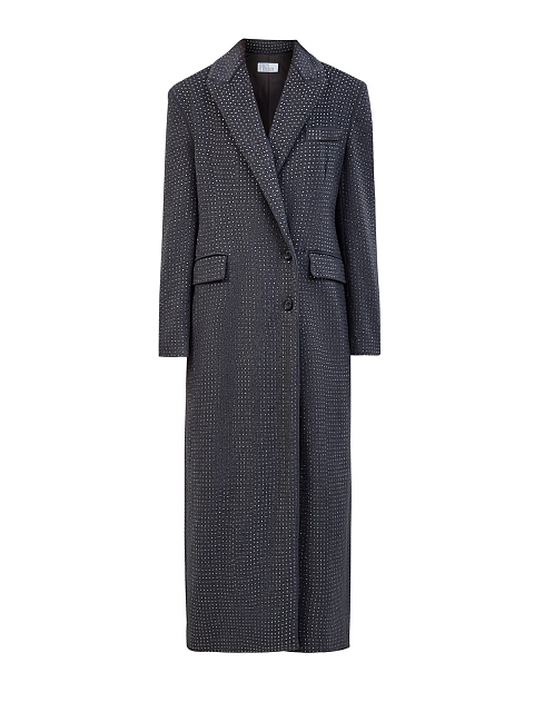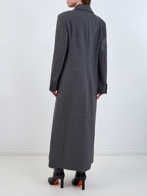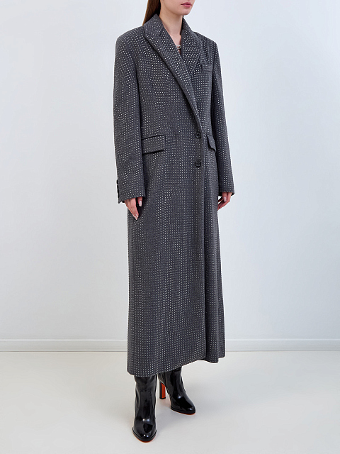 Шерстяное пальто с акцентированными плечами и отделкой стразами