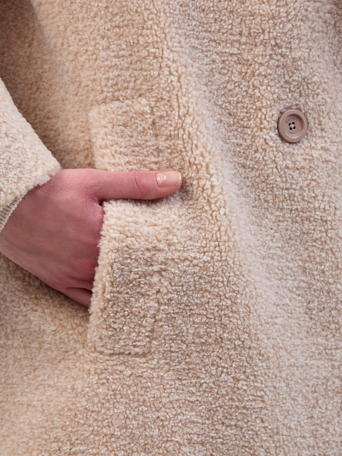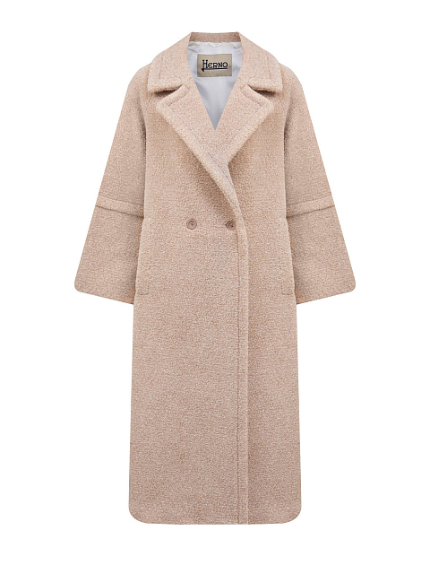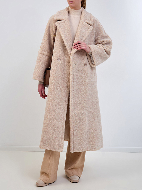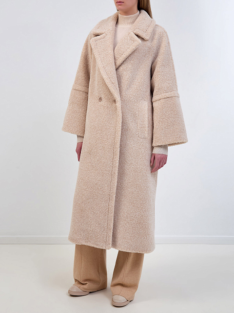 Двубортное пальто из ткани букле с широкими лацканами