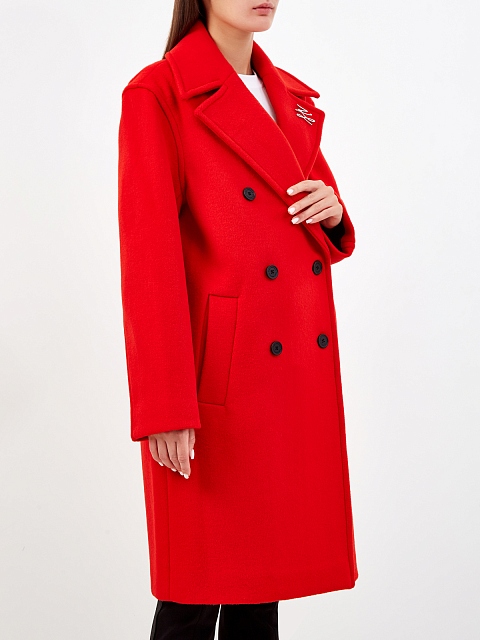 Двубортное пальто из шерсти с литой брошью K/Autograph