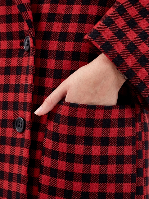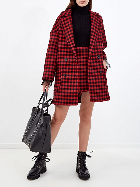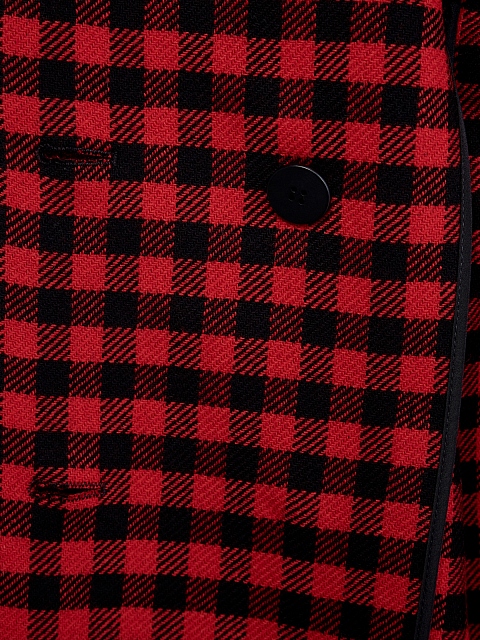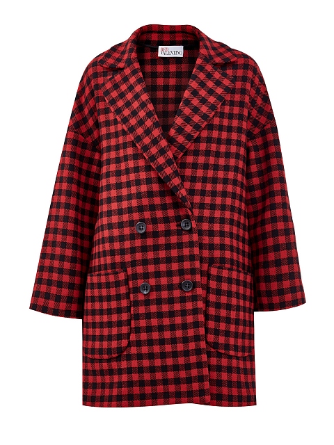 Двубортное женское пальто кроя oversize от REDValentino выполнено из плотной и теплой шерстяной ткани. Невысокий процент синтетических волокон в составе препятствует износу и облегчает уход за изделием. Классическая модель дополнена культовым принтом в клетку виши в черных и красных тонах. Детали: накладные карманы, отложной воротник с широкими прямоугольными лацканами, пуговицы из перламутра.