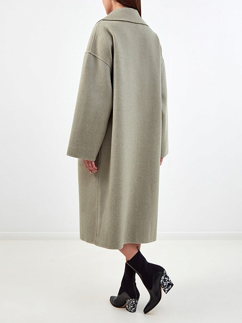 Пальто из шерстяного драпа с прозрачными пайетками