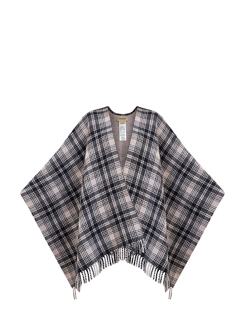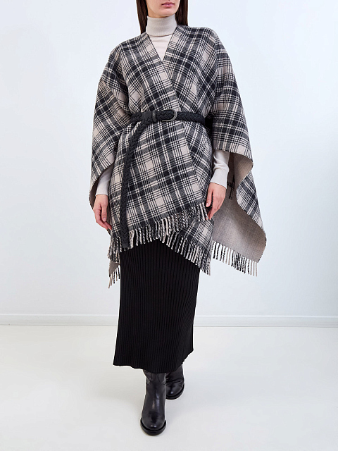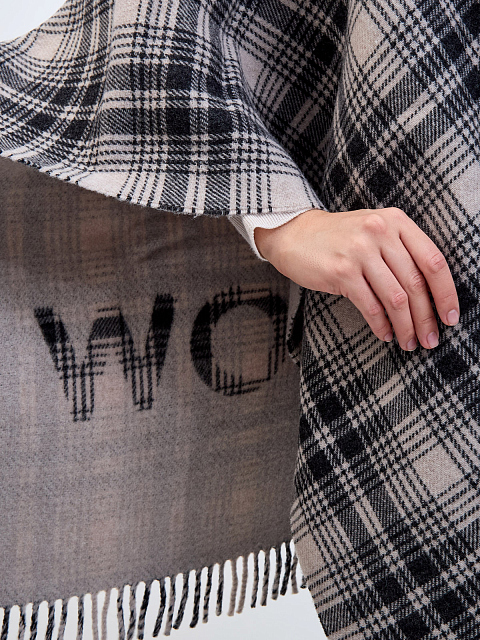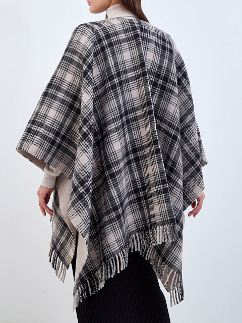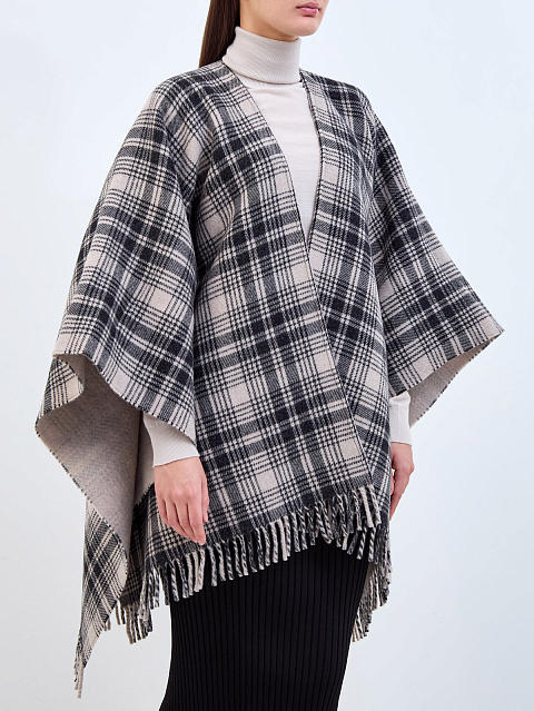 Клетчатый кейп из шерсти с бахромой и макро-логотипом