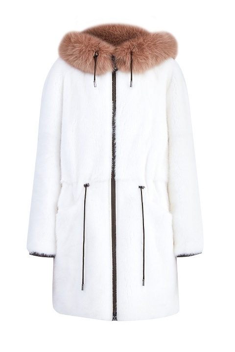 Парка с капюшоном из бархатистого меха кролика Rex с декором «Yves»