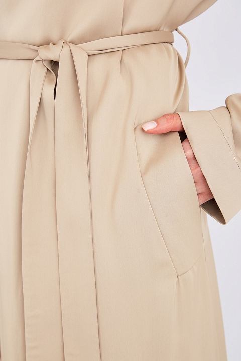Плащ в стиле кимоно из атласной ткани с поясом-лентой