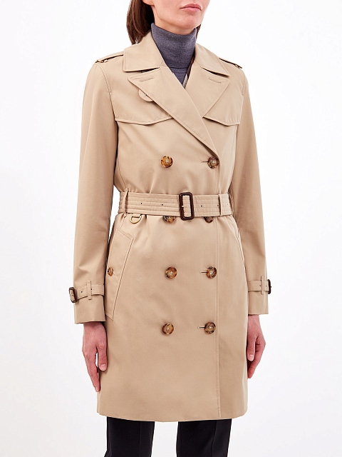 Двубортный тренч из хлопкового габардина с поясом