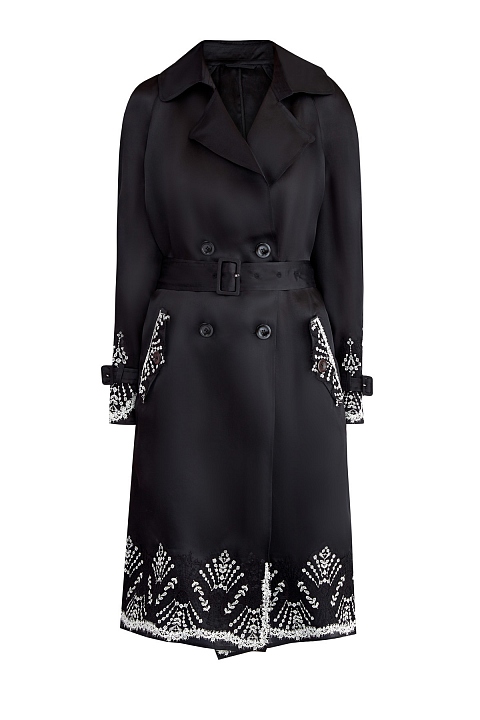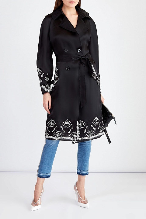 Тренчкот из атласного шелка с кружевной отделкой ручной работы