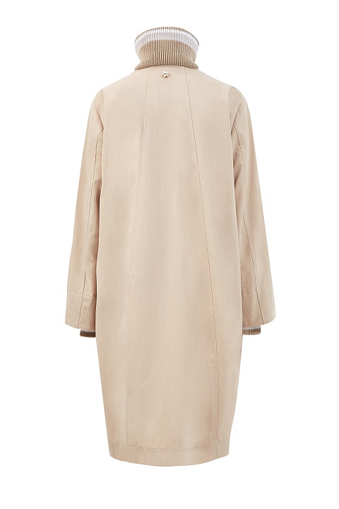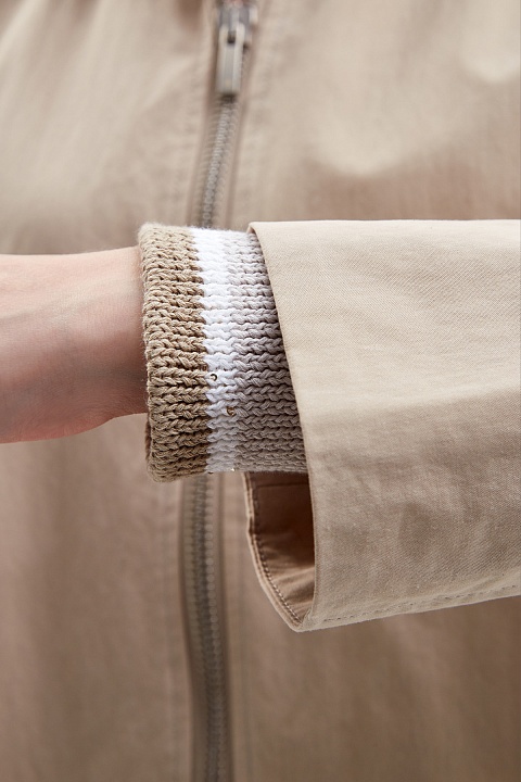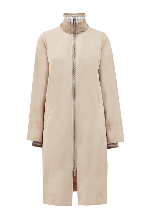 Легкий плащ от Lorena Antoniazzi выполнен из непроницаемой для ветра и дождя тафты. Воздушная ткань дополнена контрастной по фактуре трикотажной отделкой на рукавах и вороте, нить со вплетенными пайетками вносит в образ мерцающий акцент. Конструкция без подкладки обеспечивает оптимальный вес изделия. Детали: два кармана, застежка-молния с двойным пуллером, свободный силуэт-баллон. Сделано в Италии.