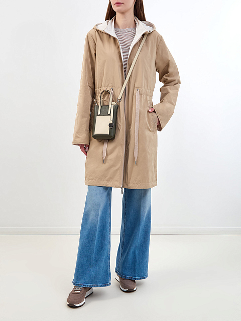 Двусторонний плащ из матовой тафты с капюшоном и цепочками Punto Luce