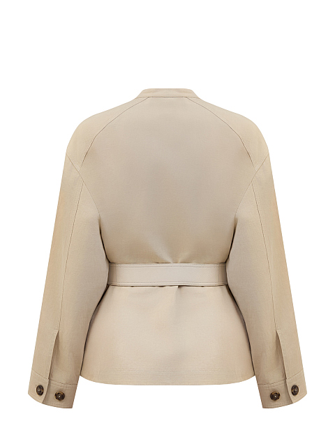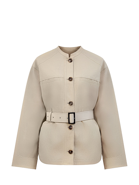 Куртка в стиле сафари из хлопка и льна с кожаными деталями