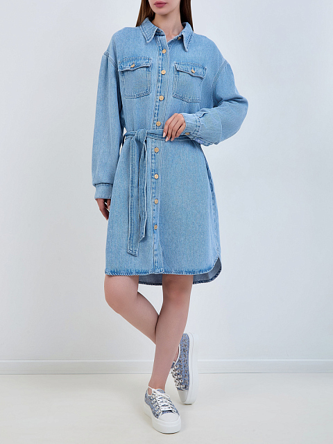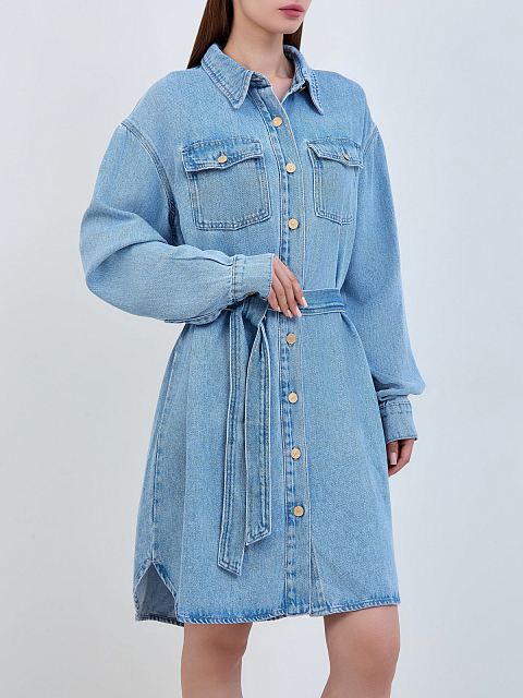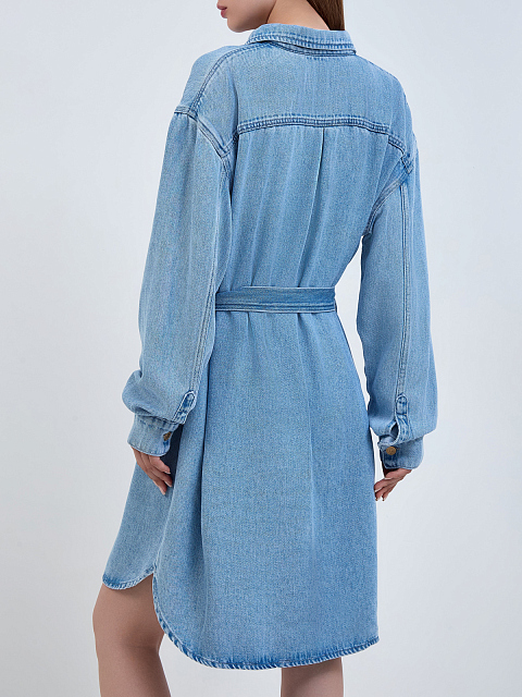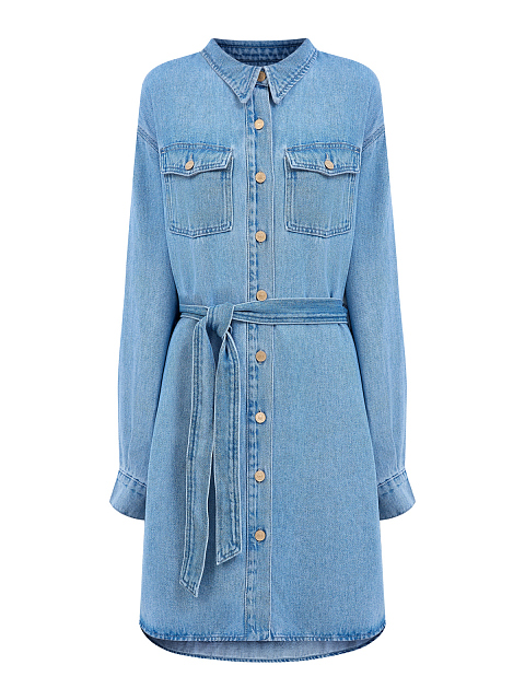 Джинсовое платье-рубашка из выбеленного лиоцелла с поясом