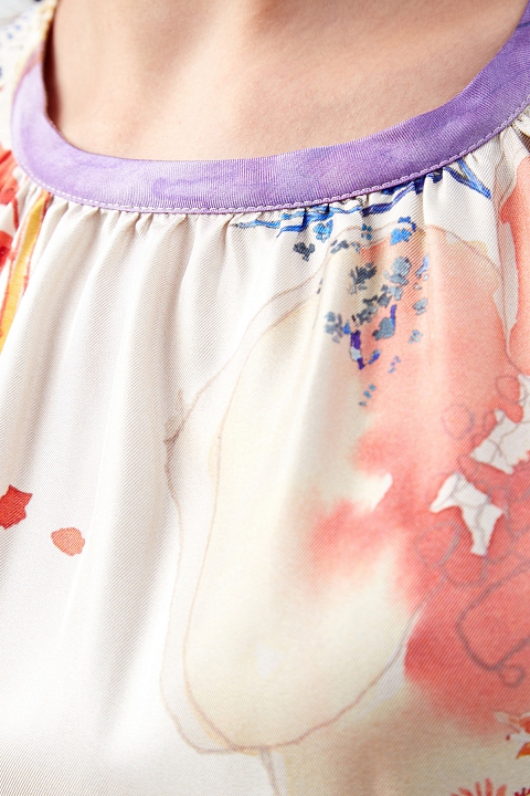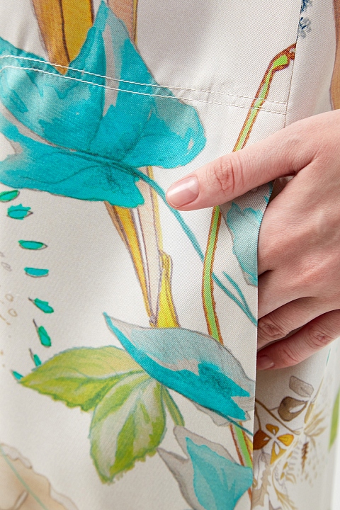 Элегантное платье свободного кроя от Agnona выполнено из итальянского атласного шелка. Модель оттенка слоновой кости дополнена цветочным макро-принтом с эффектом акварели. Нотку спортивного стиля в образ вносят простроченные карманы по бокам. Цельнокроеные рукава с оборками и присборенная отделка ворота создают легкий и воздушный образ. Детали: застежка на потайную пуговицу, фурнитура с золотистым напылением, длина по спинке 109 см. Сделано в Италии.