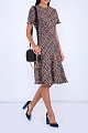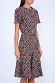 Платье Alexander McQueen приталенного кроя, выполненное из лёгкого хлопкового твида Wishing Tree коричневого тона с контрастными вкраплениями. Модель характеризуется необработанными краями с бахромой у круглого ворота и на кромках коротких рукавов. Образ дополняют мягкие драпировки на подоле юбки. Сделано в Италии.