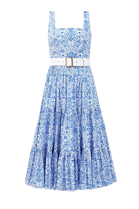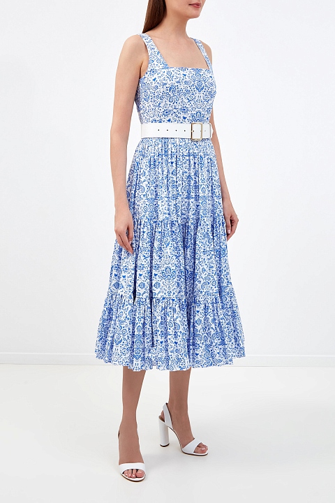 Хлопковое платье-сарафан с флористическим паттерном и съемным ремнем