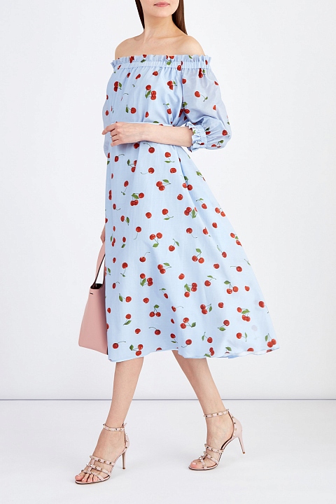 Стиль: С поясом, Укороченный рукав, Открытые плечи, С принтом, Миди