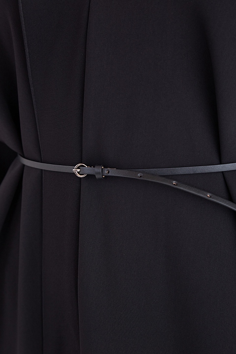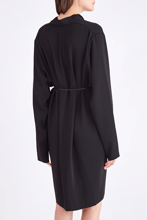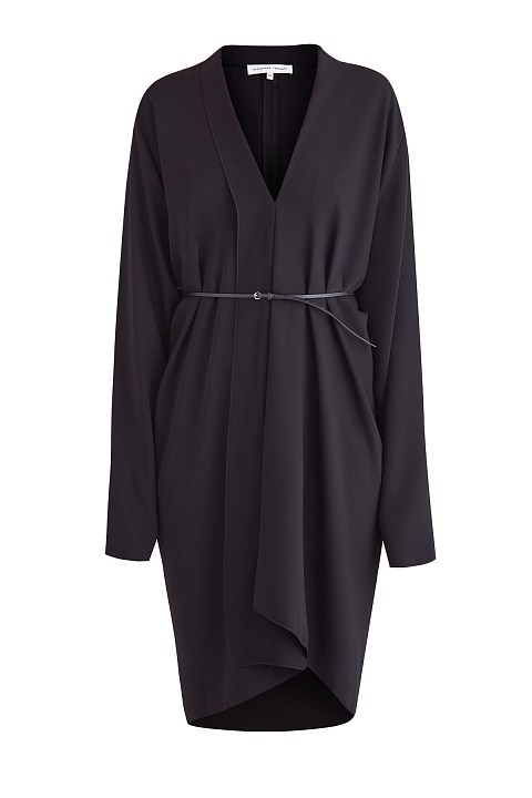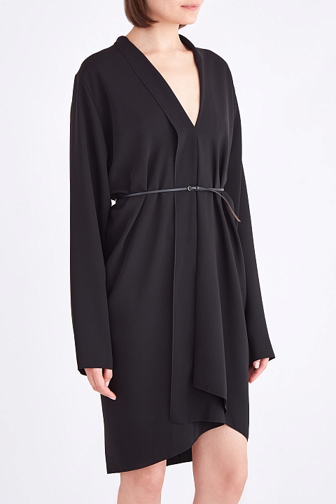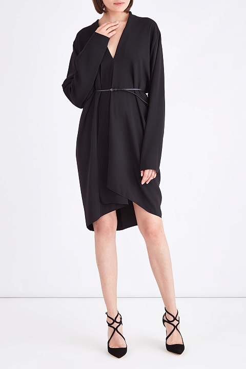 Платье асимметричного кроя с шалевым воротом и ремнем на талию