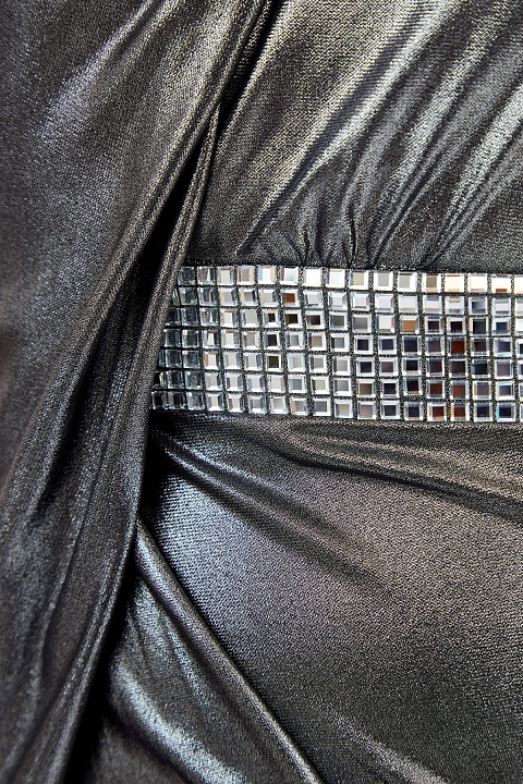 Платье на одно плечо с серебристым напылением и зеркальной отделкой